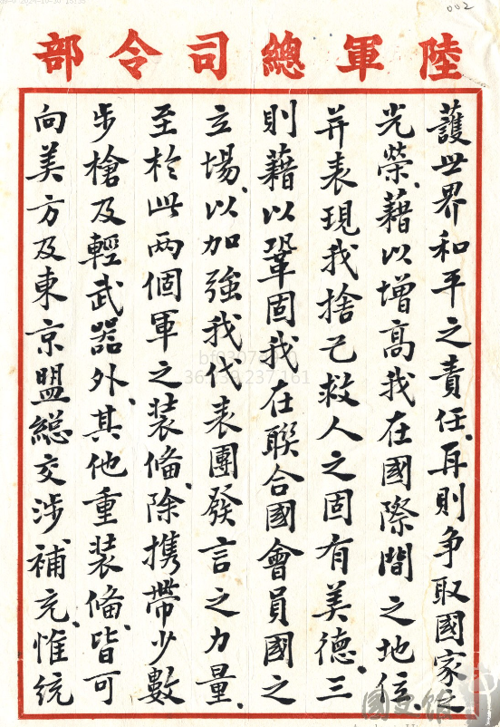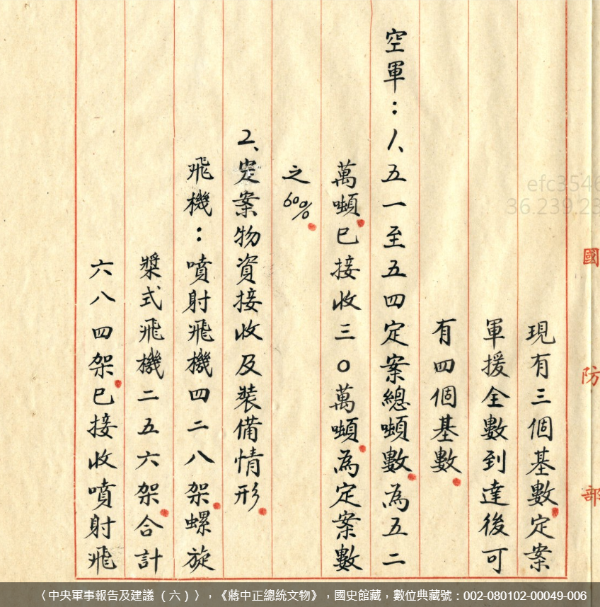 文件十一:〈中央軍事報告及建議 (六)〉,《蔣中正總統文物》,國史館藏,數位典藏號:002-080102-00049-006