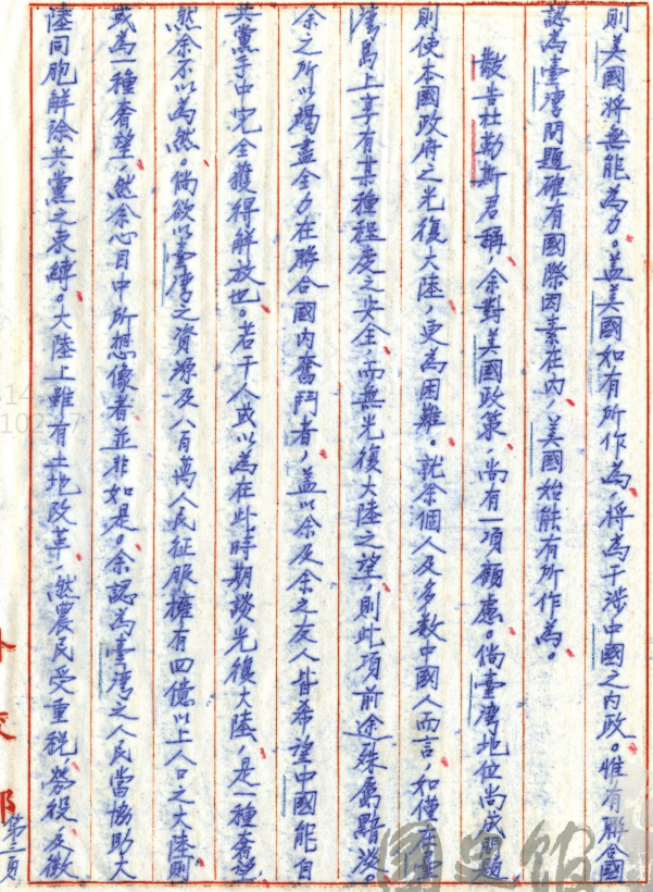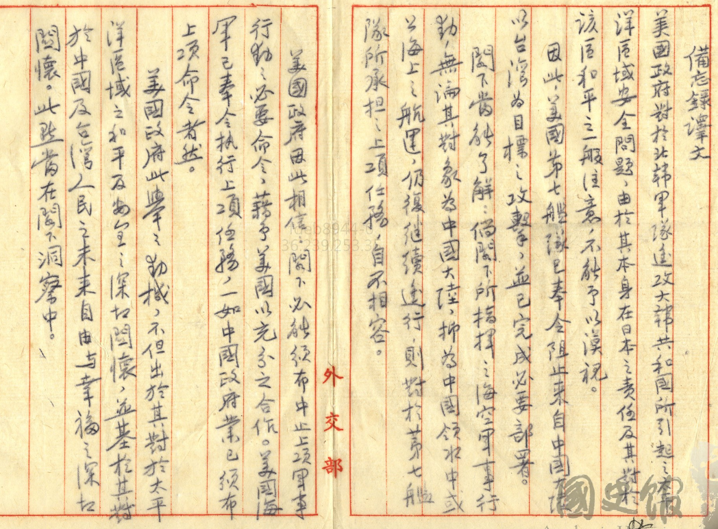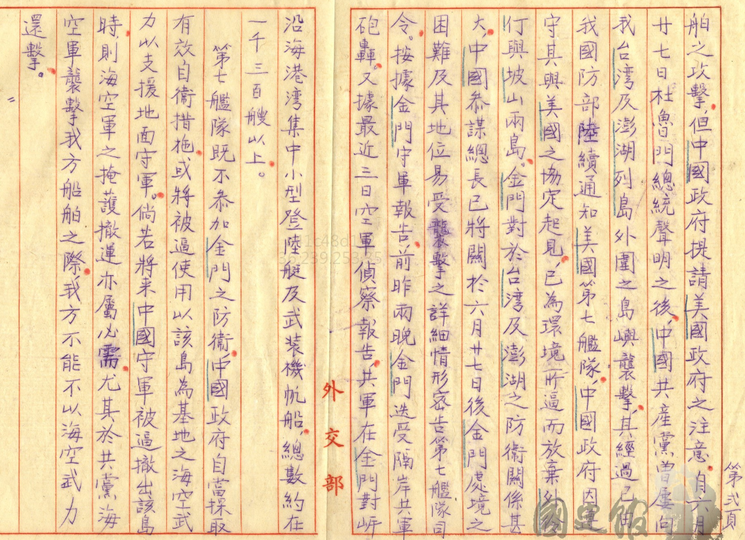 文件二:〈對美國外交 (九)〉,《蔣中正總統文物》,國史館藏,數位典藏號:002-080106-00031-003