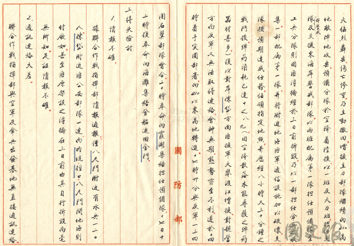 文件十:〈金馬及邊區作戰 (一)〉,《蔣中正總統文物》,國史館藏,數位典藏號:002-080102-00100-005