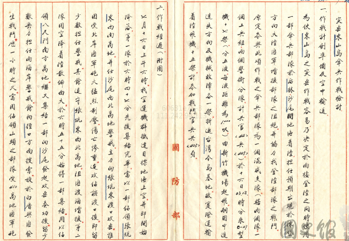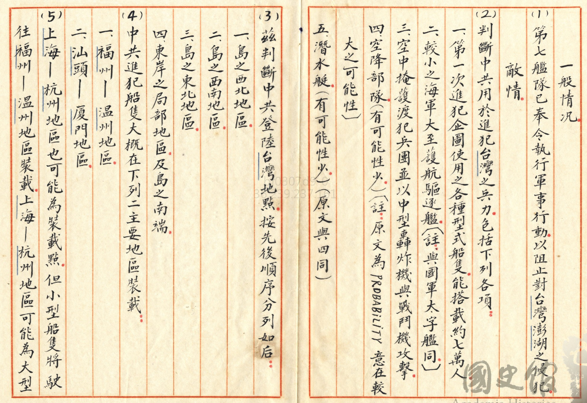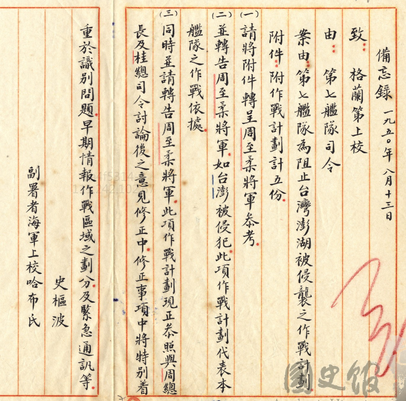 這個是對的,後來美國跟中華民國有所謂樂成作戰計畫,裡面的原理原則其實就跟現在我們看到這份文件是差不多的,那這個如果大家對軍事特別有興趣的話以後我們再繼續討論。