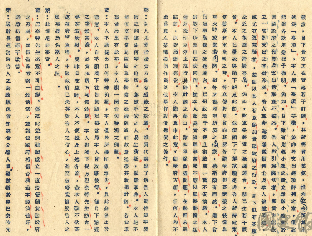 所以在這個情況之下我們當然也是很不爽,我們就對這個也是很有意見,所以後來又有一個文件,就是在9月3號,藍欽就是當時駐台灣的代辦就來找葉公超,藍欽說什麼東西呢?藍欽說我是以中國的老朋友自居,現在我覺得好像有一種恐懼在你們的政府裡面出現,就是說我們企圖干涉貴國政府行政跟侵犯貴國主權。這個基本上沒有,不用緊張你們不用太擔心,但是我們現在希望能夠設計一個系統,這個系統是什麼東西呢?就是說一切支出要經過一個中心機構,如果哪一個預算需款較多,這個管制機構就可以代為申請,也就是說現在所有的錢最好是設立一個中心機構,然後你現在誰哪一個地方要錢比較多,就要跟這個中心機構申請。你們有些秘密的支出最好也都跟這個中心機構申請。接下來藍欽就講得不客氣了,他說我最近知道貴國政府在國外上存有相當數量之外匯,這些相當就是說你們的標準很多但我們可能不多,但是這些外匯也應在上述的管制機構之下,意思就是說你們最好是也要設一個機構來管帳,不要一大堆秘密帳戶。