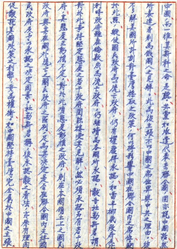 文件四:〈對聯合國外交 (五)〉,《蔣中正總統文物》,國史館藏,數位典藏號:002-080106-00018-004
