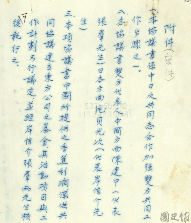 大家注意到本項協議書,中國所提供的香蕉利潤是建立東方公司之基金。一切工作計劃要由岸信介跟張羣兩位先生核可後再執行,這是相當重要的,代表這也不是開玩笑的。