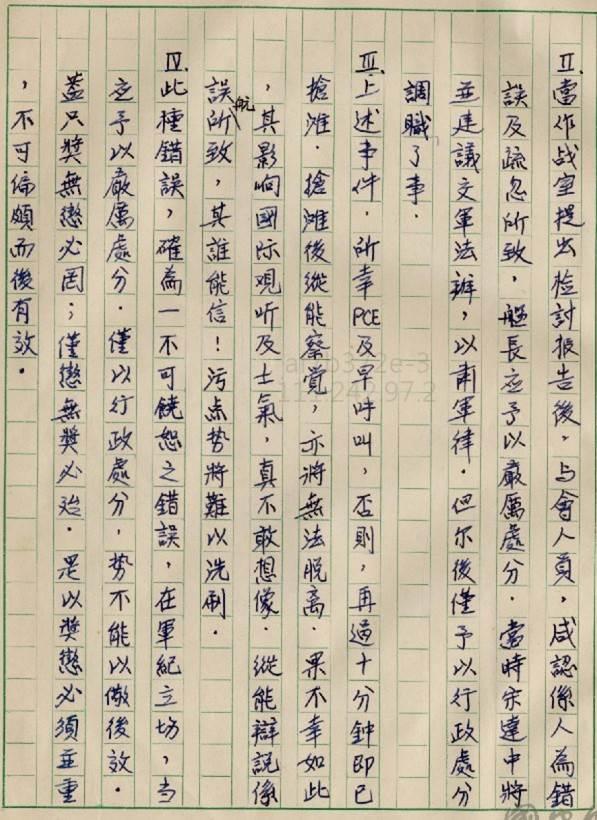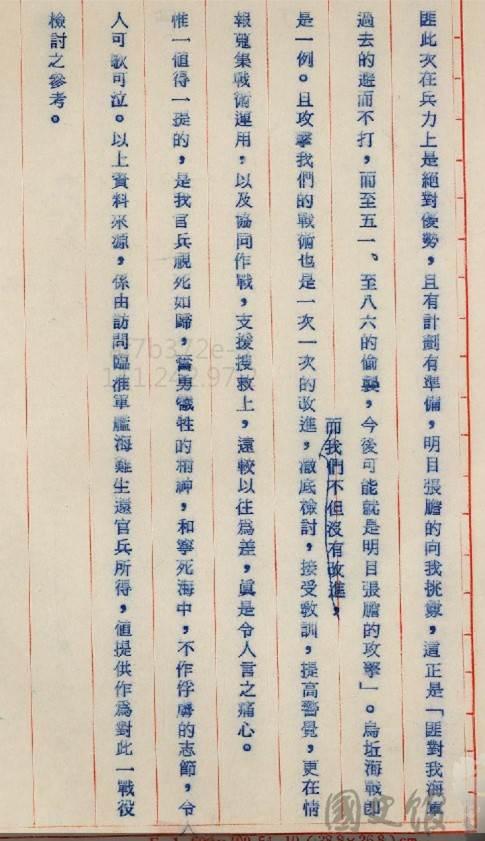 (1)我們繼續再往下看,後面就是一些檢討作為,研究對匪戰法、配合兵棋演練、海防雷達要全面監偵、90炮掩護泊地。最重要就是功過責任嚴予徹查。