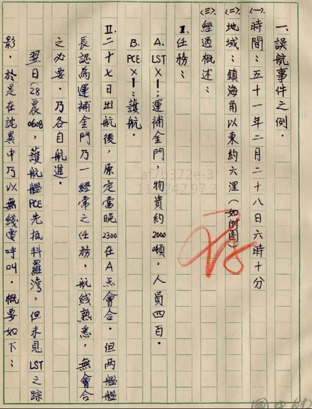 (1)我們再往下看,這個誤航事件就更神奇。時間是民國51年2月28日6點10分,這個資料是呈給蔣中正蔣經國看的,所以關於失敗跟錯誤的事情,絕對沒有人敢說把沒有失敗敢跟蔣總統報失敗,他不要命了,只有說失敗了不敢真的報,絕對不會說沒有失敗假裝失敗。這樣各位可以懂這個意思嗎?所以有人說什麼國史館的史料都是不見得可信,我們要看史料的性質跟內容,像這些報失敗的資料,我可以告訴各位那個真實程度,只會有更多失敗的沒有報,絕對不會說沒有失敗報失敗,這些失敗的情況都一定是真實的,只有更嚴重的沒有報,不會說沒有失敗報失敗,這樣大家可以懂研究史料基本史識的概念嗎?