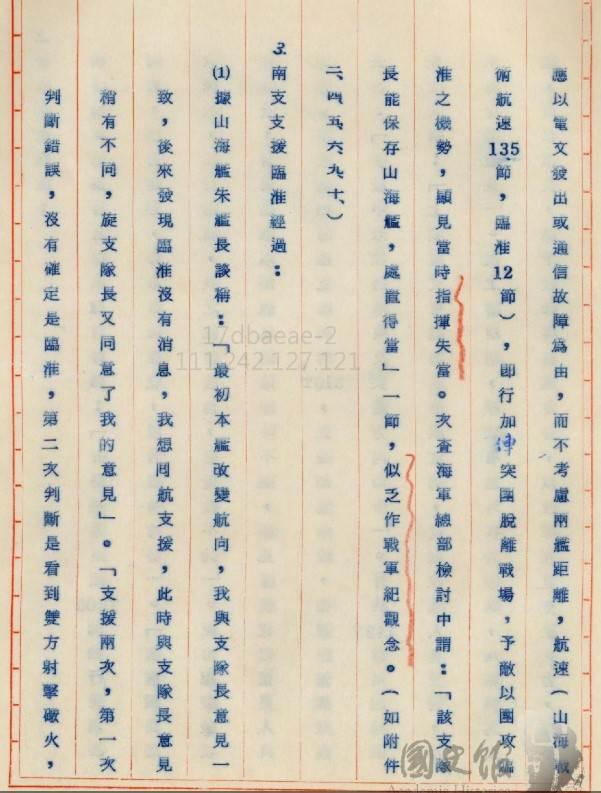 不考慮兩艦距離,山海艦加速突圍脫離戰場跑掉了,給敵圍攻臨淮艦的時機,顯現當時指揮失當,所以這次的海戰就是一艘被擊沉,但是另外一艘沒有,原因是另一艘臨陣脫逃了。大家知道嗎,這個呈報給蔣經國的報告就是說,一艘就是臨陣脫逃。