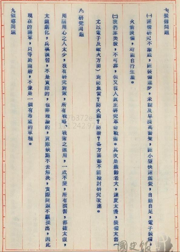 責任問題,大家看到三次事件之後一條船都上不去,結果官兵被俘,或被外國艦船救起,丟臉了。這些都是檢討的內容。